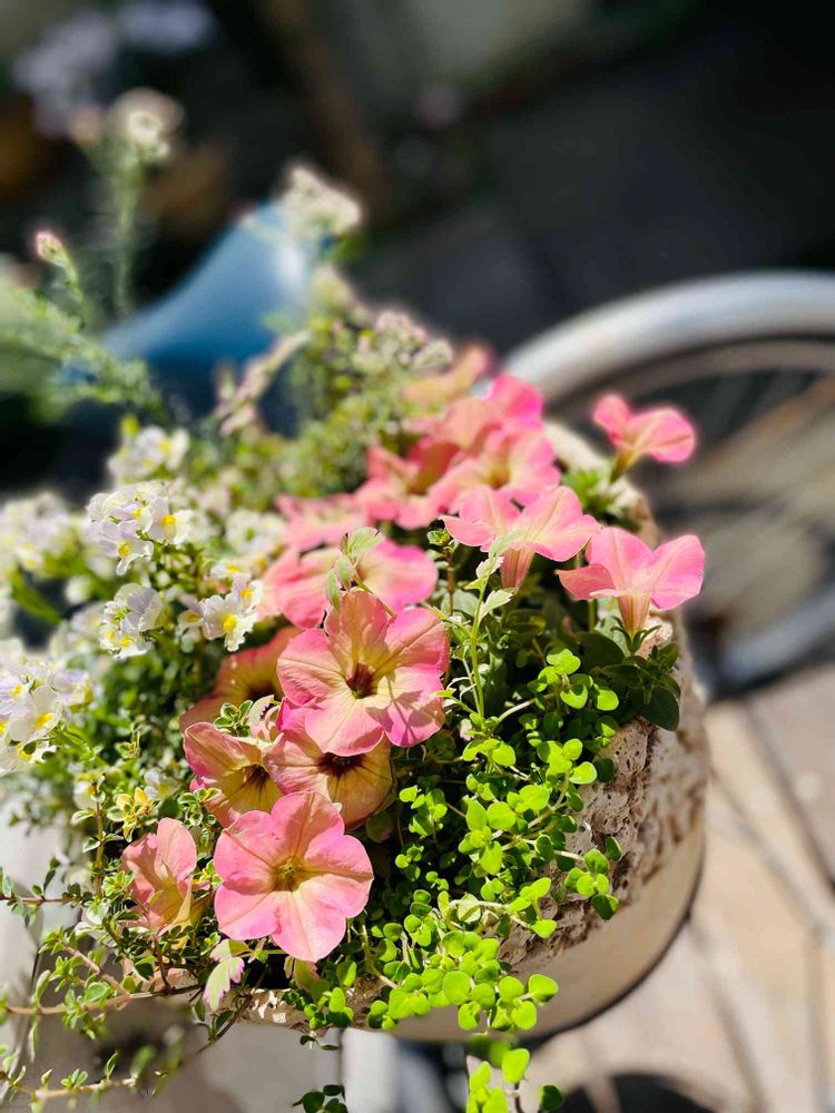 さん☺︎寄せ植えで気をつけていること。。。🤔花だけにならないようにしてること?かしら。思ってるよりも2ポットくらいグリーン系の種類を増やすかしら。。お花屋さんに行った時に見本なんかである寄せ植えをけっこう観察したり。。GSで、色んな方の寄せ植えを夢中でみてまーす♡☺️🙌