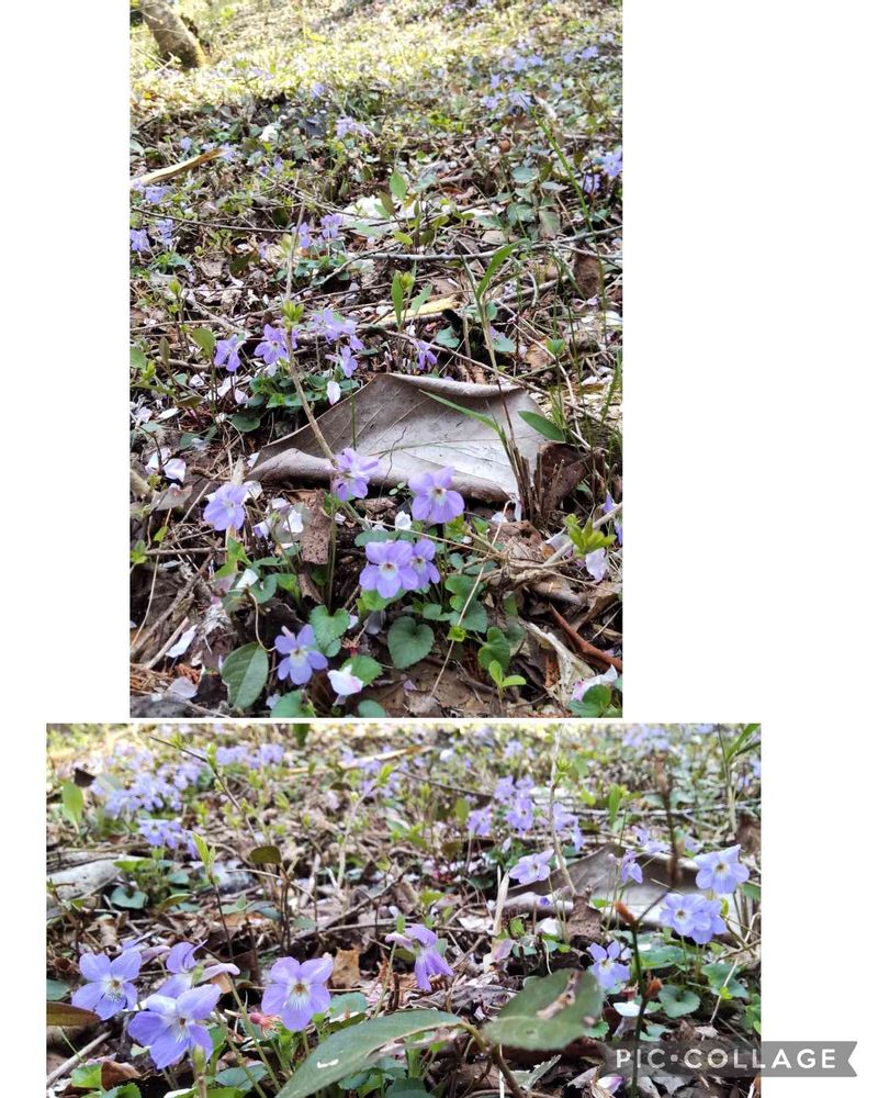 タチツボスミレと思われるスミレが自宅前の山に群生していて、山肌が薄紫色に染まっています💚💟💚💟💚