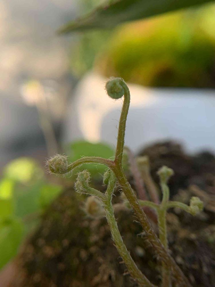 小さな盆栽鉢からカニクサの新芽がニョキニョキ…かわいいですね☺️💗💚
