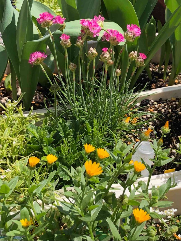 手前の かれんじゅら は日が当たると黄色い花が開いて日陰になってくると花が閉じてきます💛💚💛