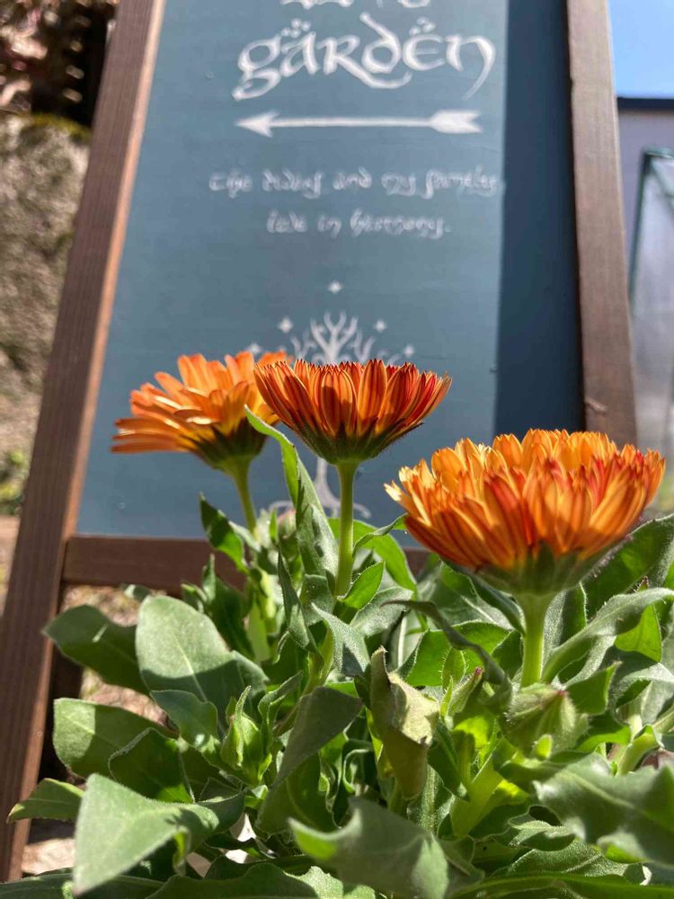 小さな庭,カレンデュラ・コーヒークリーム,手作り看板の投稿画像