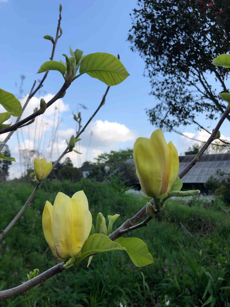 黄色いモクレンが開き始めました