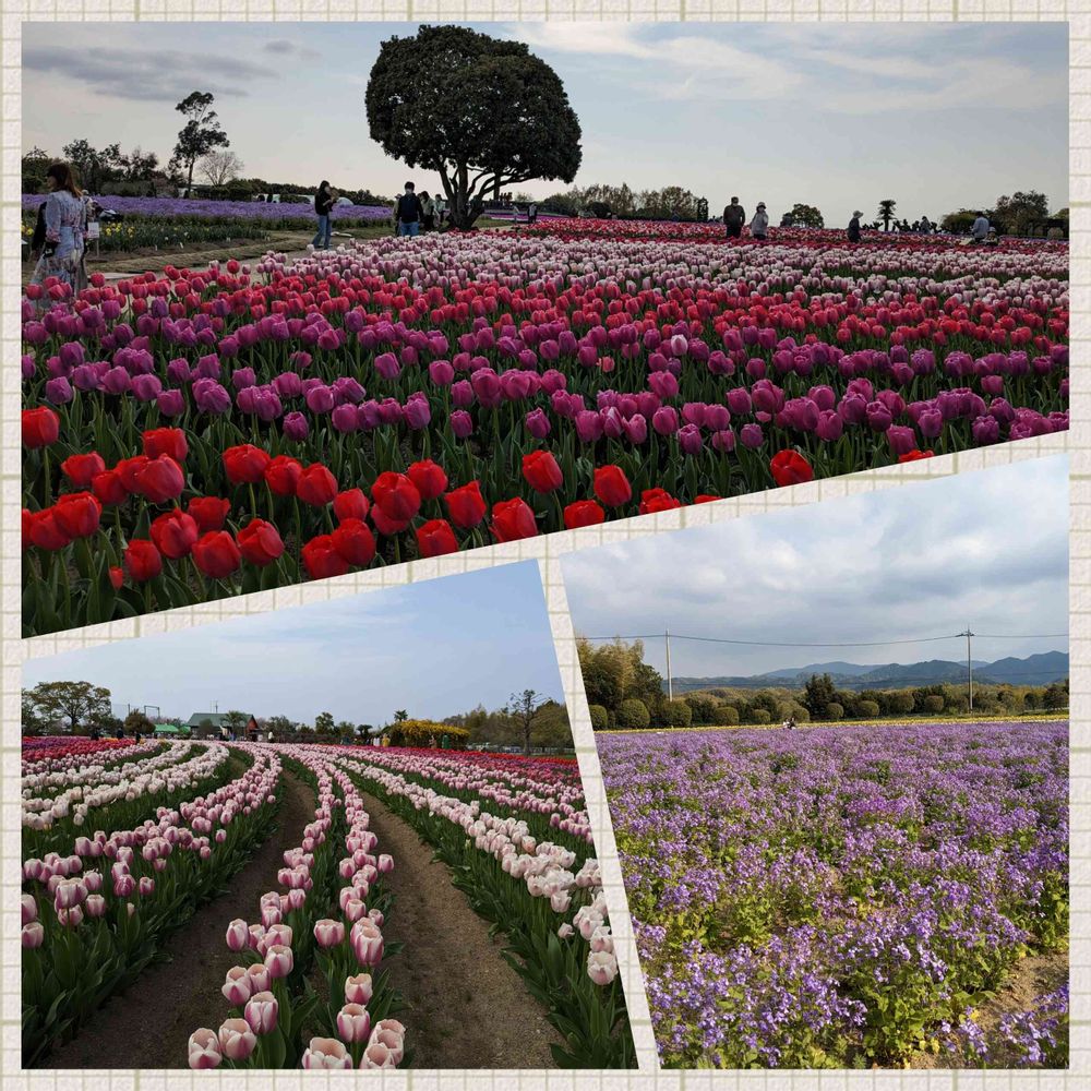 そこには、広大な土地一面に広がり艶やかに色取りどりに、綺麗に並んだチューリップ🌷の風景が!!!