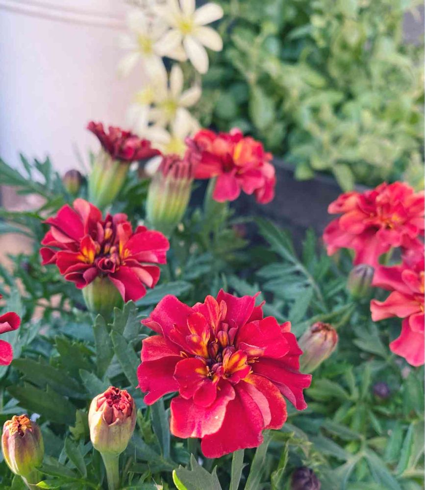 マリーゴールドは黄色をよく見ますが赤い花は華やかで素敵ですね🍓🌺✨