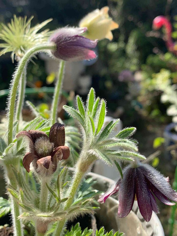 翁草さん、お迎えした苗鉢のまま😅お花見🌸🌸お出かけしていたからごめんなさい😊さあて、どこに植えましょうか🤗山野草さんは強いと信じています😊