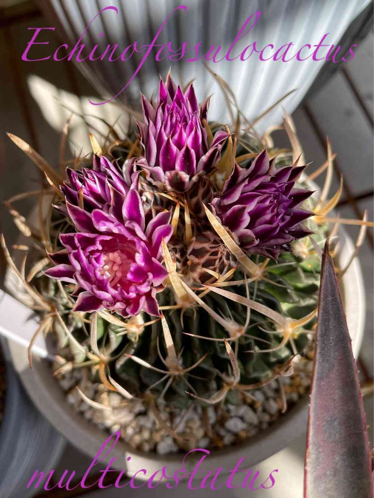 長い棘の中に咲いてるお花、とても素敵な色ですね💜💗✨
