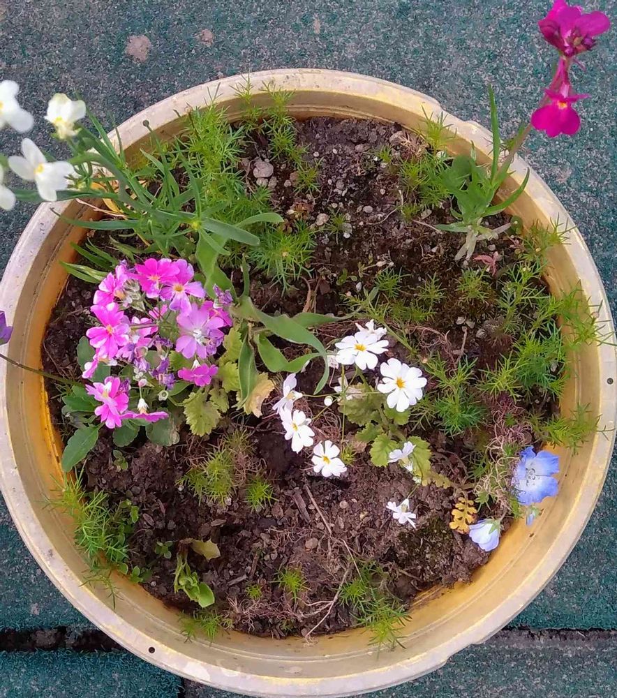こぼれ種が集まった寄せ植え?の真ん中に…今年はこれだけ😅