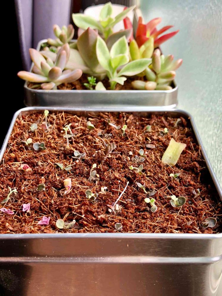 昨日、古株の寄せ植えの仕立て直しをしていたら埋もれていた超ベビー達を発見!