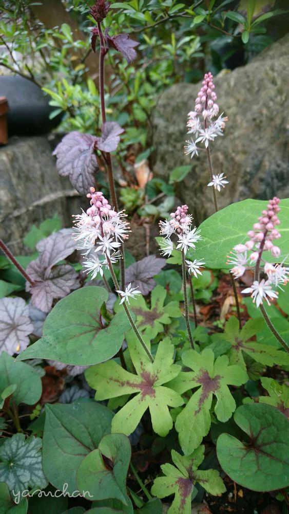 洋風の庭にも 和風の庭にも似合いそうなティアレラ…可愛い花姿のうえに日陰の場所でも元気に育ってくれる良い子ですね♡