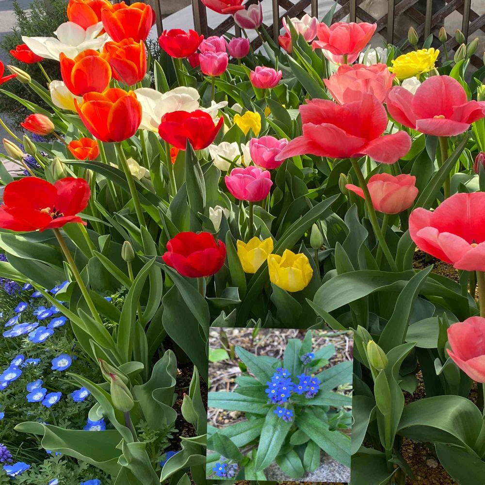 チューリップがたくさん咲いて来ましたが、今日の主役はワスレナグサ
