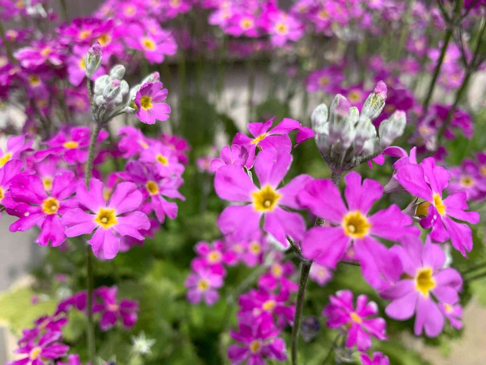 桜草が咲き誇って、庭に優しさを醸しています🎶🍀🥰