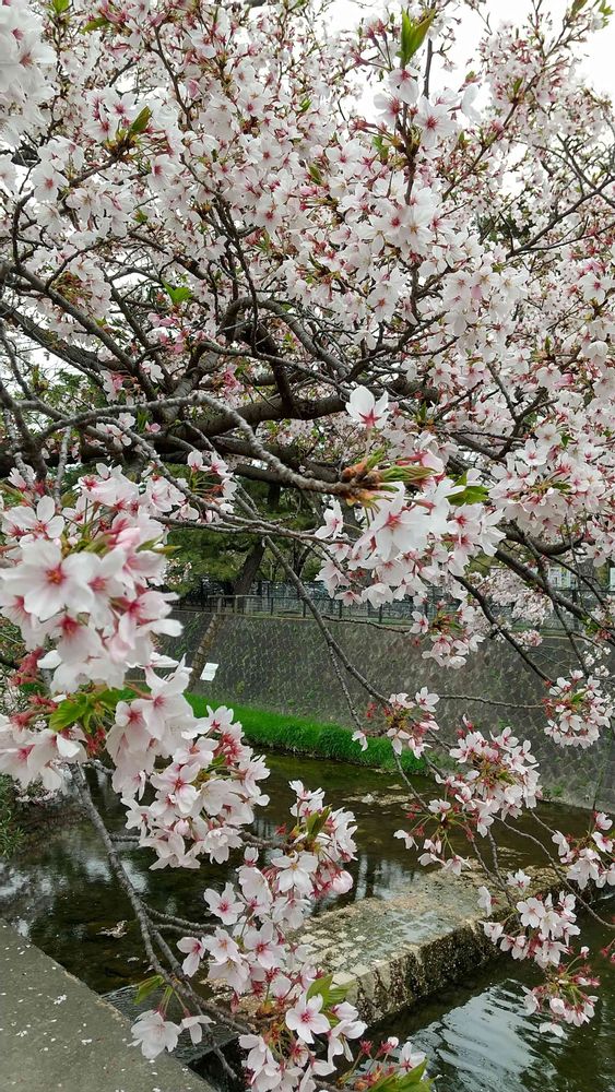 夙川の桜🌸の花が満開ですので、綺麗にたくさん咲いています。