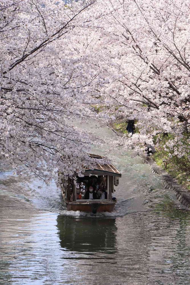 歴史と酒蔵のまち・伏見の景色を、川沿いに咲く百数十本の桜を愛でながら、ゆったりと巡る十石舟