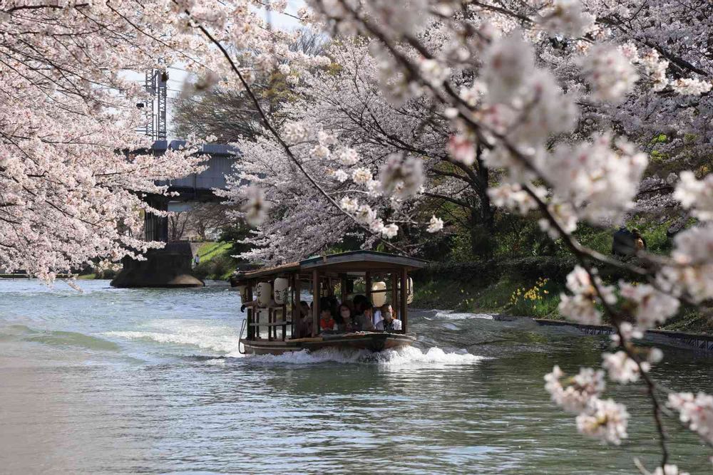 歴史と酒蔵のまち・伏見の景色を、川沿いに咲く百数十本の桜を愛でながら、ゆったりと巡る十石舟