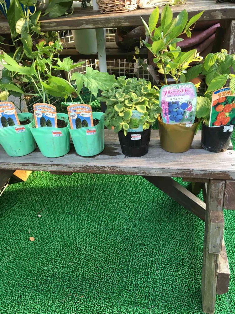 本日MrMaxでの戦利品💕😉ゴーヤ3本ブルーベリーラズベリー💕アロマティカスです💕😉👍アロマティカスなんでいい香り💞