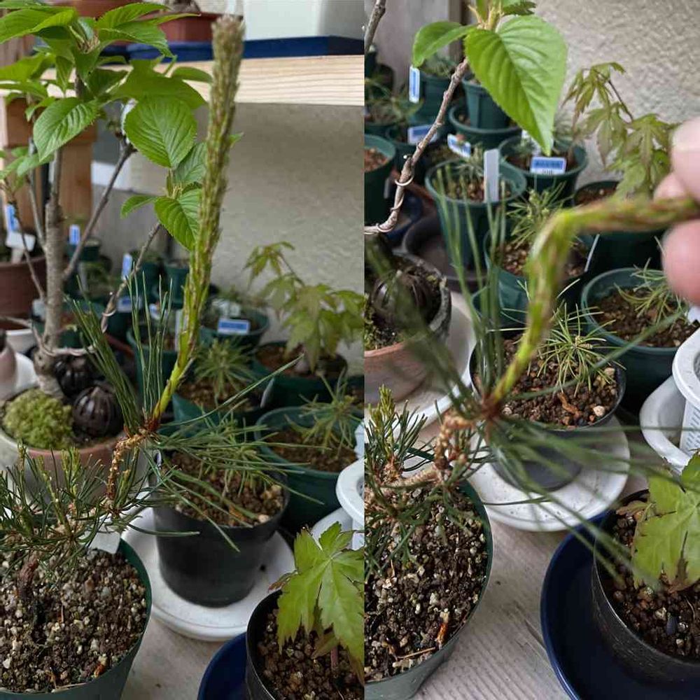 赤松何年目だったかな🤔3年芽❓余りにも元気が良すぎて!下の芽が枯れる心配があるので芽摘みしたよ👍