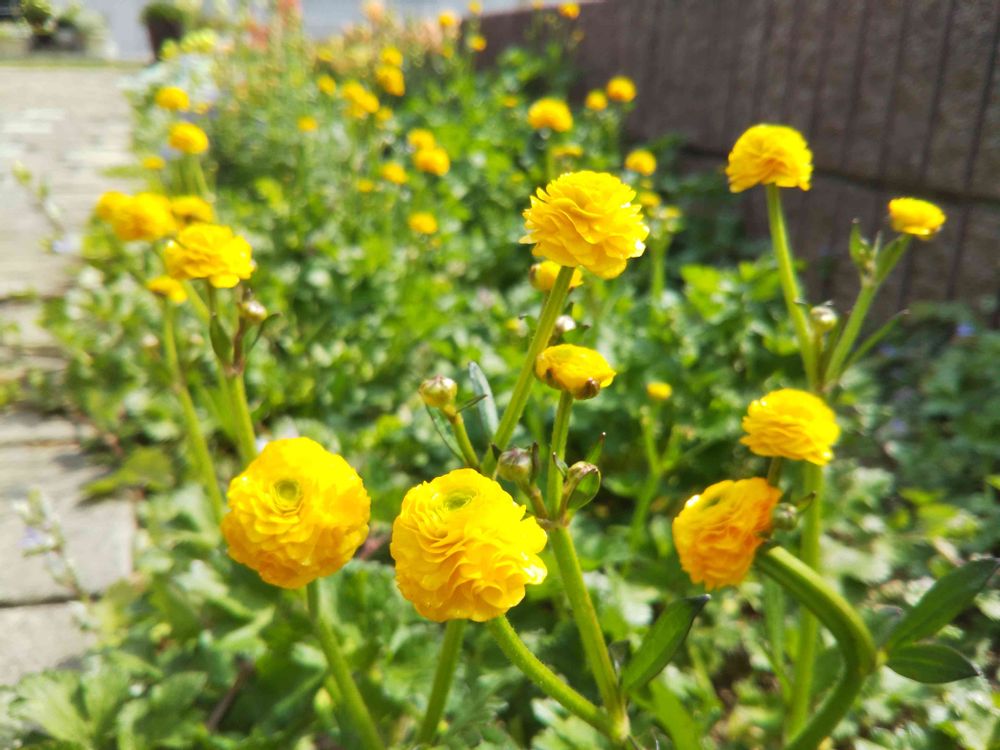 雨の前に、昨日撮った花壇の宿根ラナンキュラス・ゴールドコイン💛