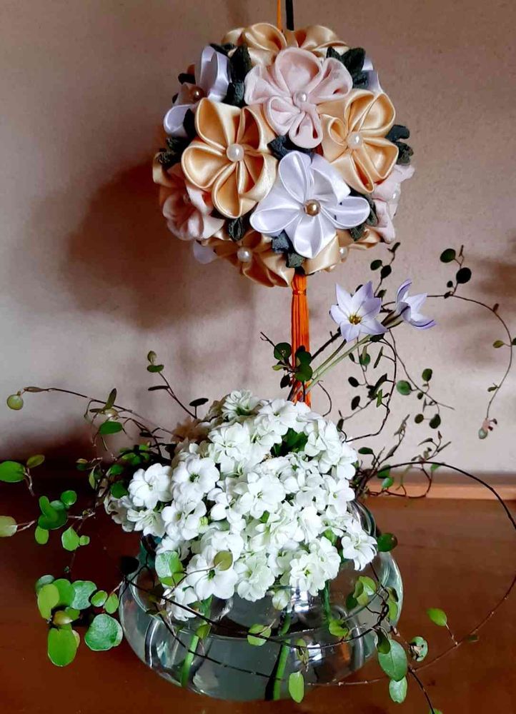 つまみ細工のお花❣️のくす玉❣️