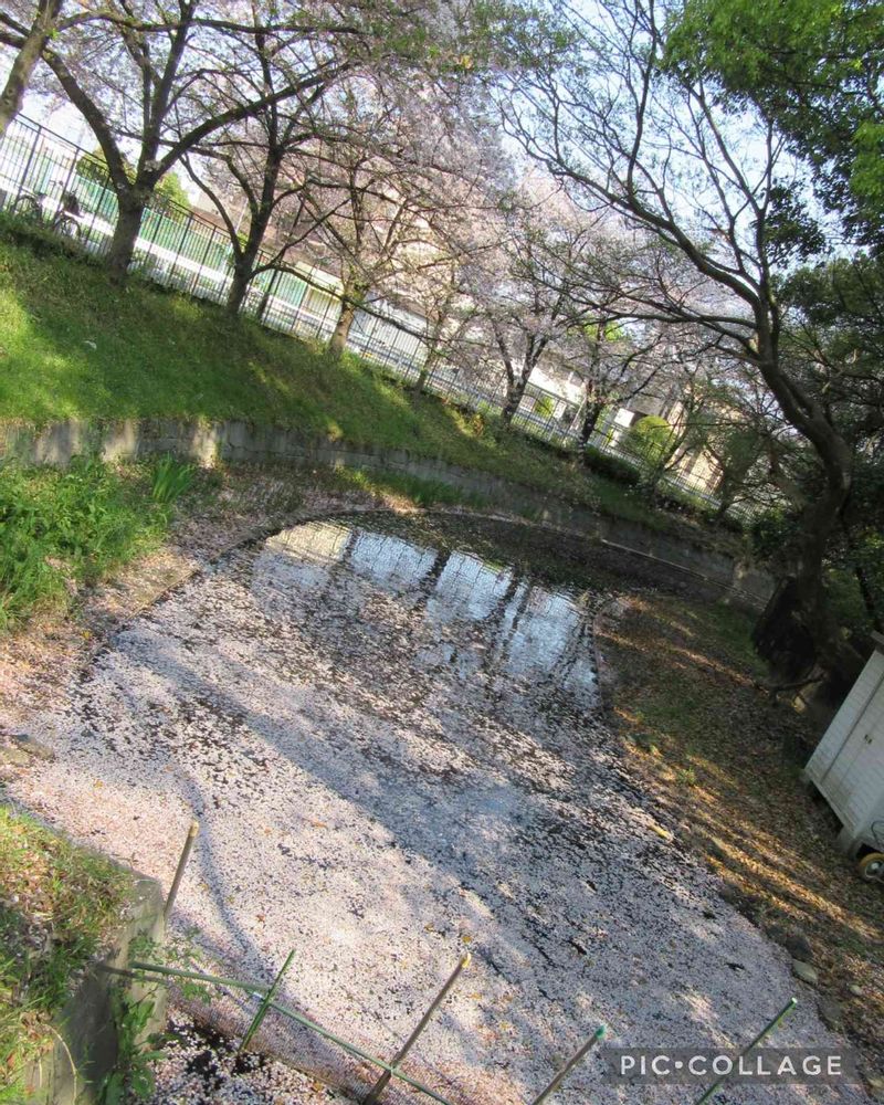 通勤路の水郷が桜の花びらベールに被われてます💞