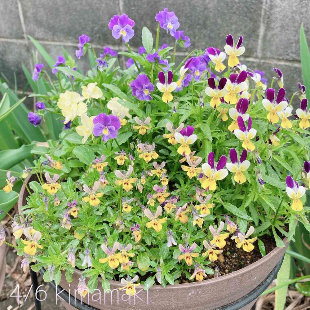 スカスカだったビオラの寄せ植えがいい感じになりました