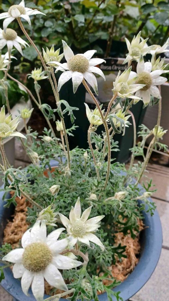 葉っぱも花もふんわりコットンの様でブルーグレーの鉢(ダイソウ😁)に似合ってます🤗…乾燥につよく咲き終わった花を摘み取り、上手に管理すれば2年目も楽しめる…とφ(..)😅