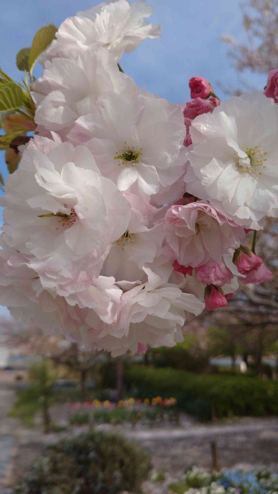 スイカズラさんの八重桜,松月桜,公園花壇の投稿画像