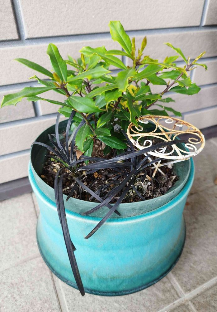 挿し木した黄金ヒイラギとコクリュウ