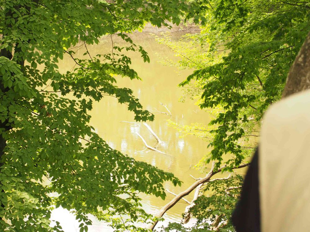 ご近所散歩中カメラおじさんと遭遇。カワセミがいると教えてくれました☺️ 真ん中ら辺に写ってます! 笑〜