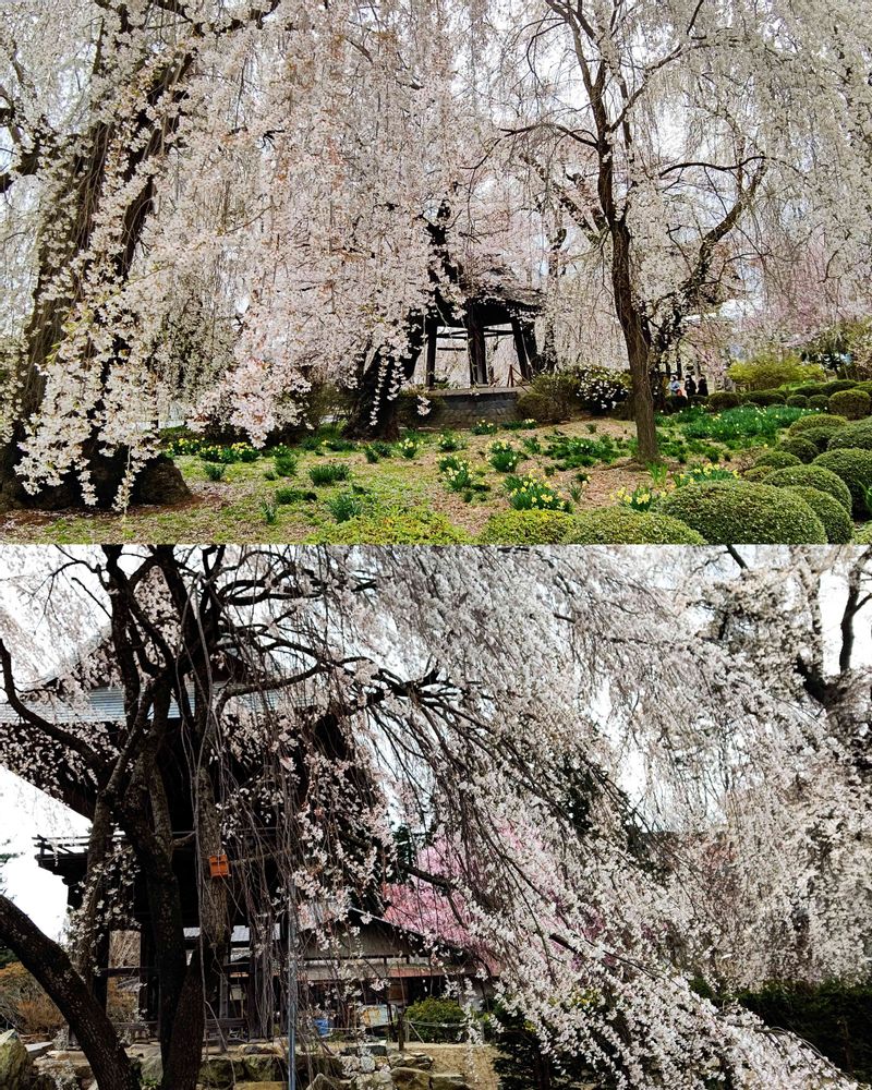 曇り空の中でも枝垂れ桜綺麗でした🌸
