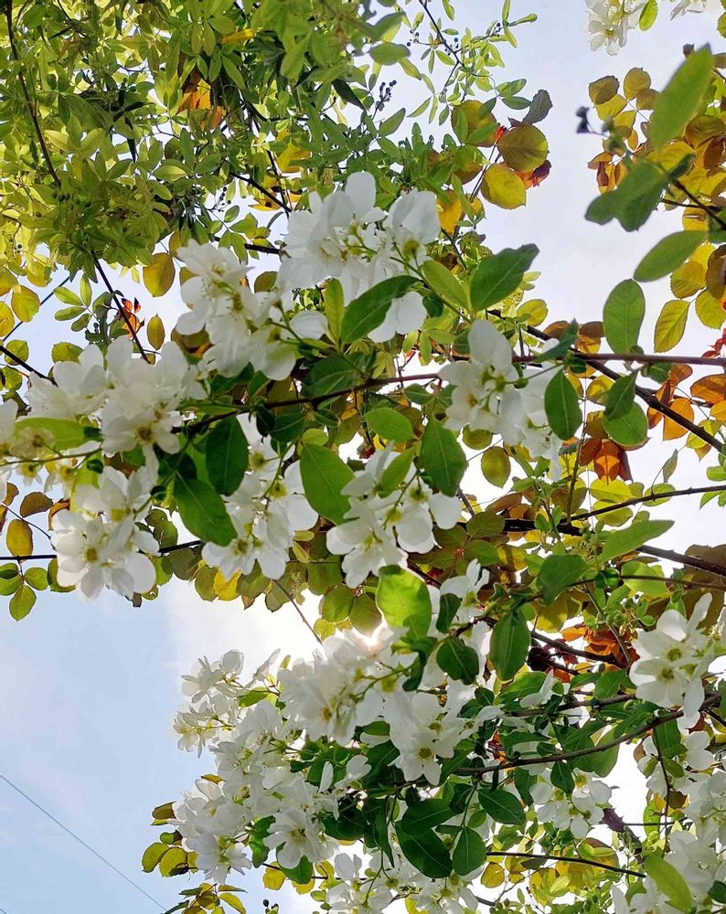 こういう白いお花もたくさんの種類がありますね💠そらガーデンで撮ってきた白いお花、葉っぱが少し尖っているので利休梅でないことはわかりましたが、調べるとヒメリンゴとか何とかいろいろ出てきて、またまた匙を投げました😅名前の札を立ててくれたらいいのに、と思っても、そんな無粋なことはそらガーデンさんはしないのですよね😂