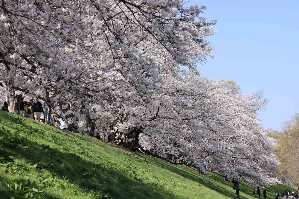 全長1.4kmの堤防上で、約220本のソメイヨシノがつくる「桜のトンネル」は、圧巻の景色です。