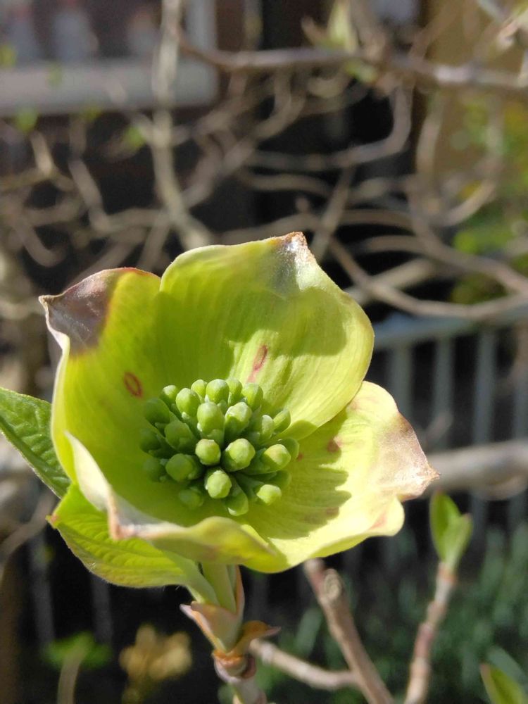 今うちのハナミズキもまさにこんな感じです😃去年もこんなに緑色だったかな?と