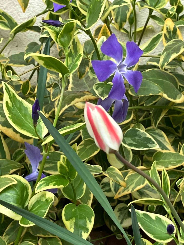 小さな庭,原種系チューリップ・レディージェーン,斑入りツルニチニチソウの投稿画像