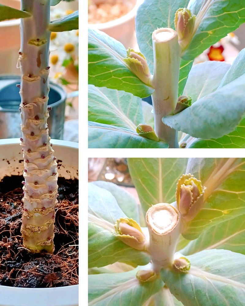 切ったあとの葉牡丹の根元が太くなり、何やら小さなコがふくふくと育っている。