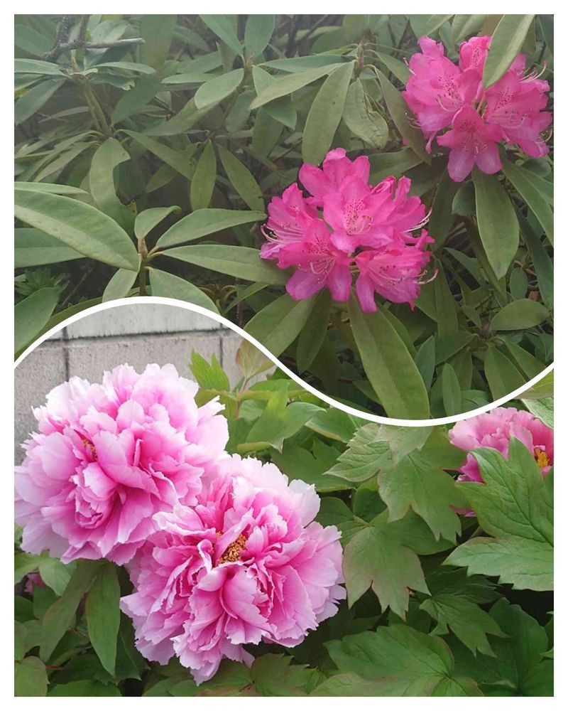 道路脇のお家に咲いていたシャクナゲと芍薬