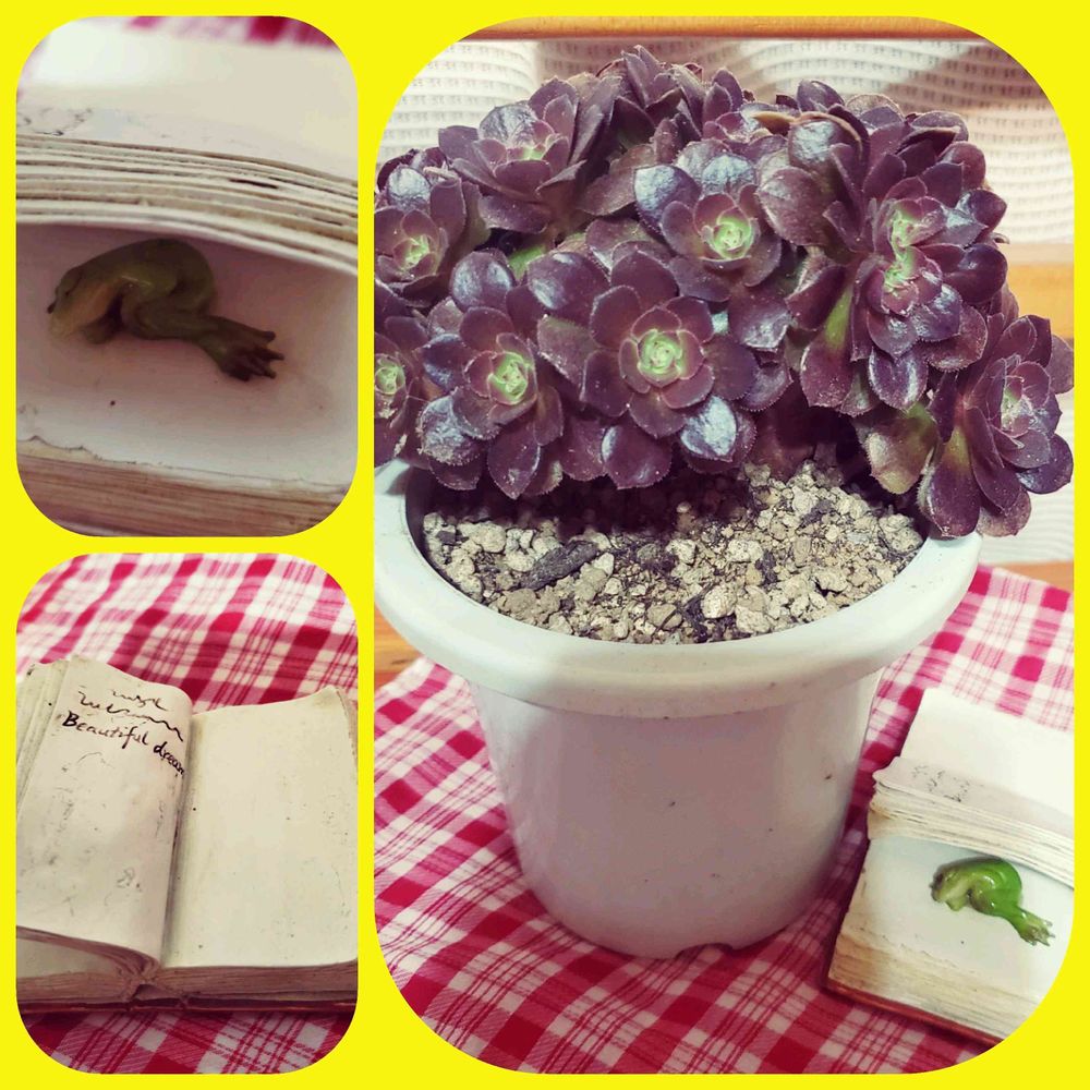 本を読みながらお休み中のカエルさんで🐸🌃💤