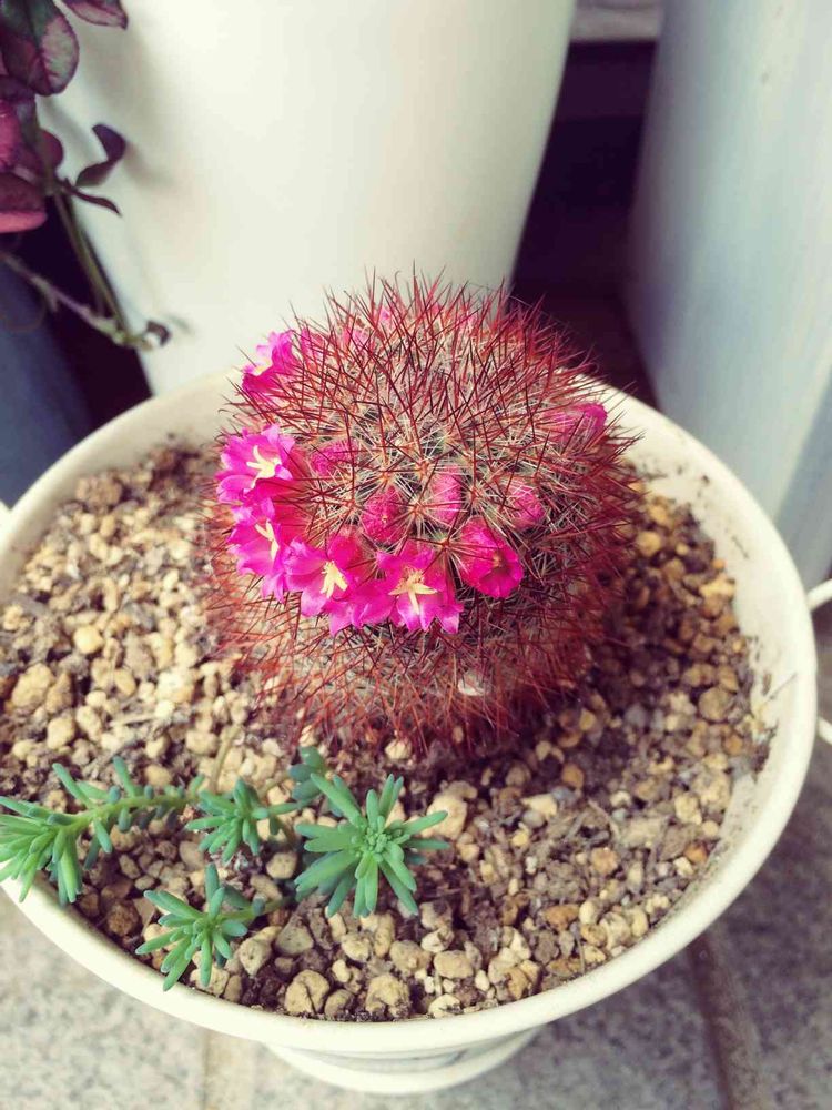 トゲが赤くて綺麗です(^-^)/お花咲いて嬉しいですね🍀