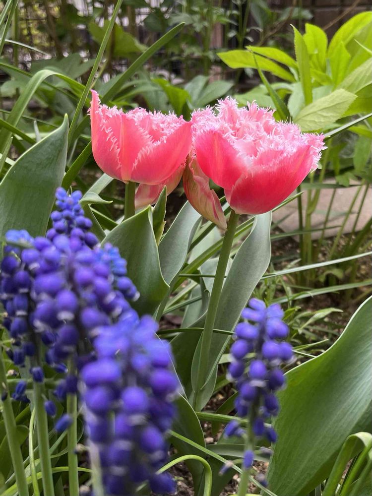 去年はプランターで一緒にいたムスカリと今年はお庭植えで。