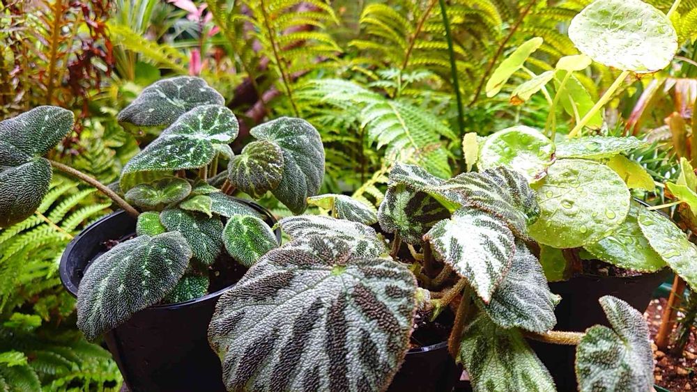 ベゴニアは難しいのも多いんですが、シルバージュエルは比較的簡単な方で、多湿状態をキープしなくても案外大丈夫です。うちのは室内で、灌水も週一やるかどうかでなんとかなってます。プスツラータもおそらく同様で、フートエンシスは初めて育てるのでまだよくわかってないですが、今のところ同様の管理でなんとかなってます。去年育ててた根茎性ベゴニアは、屋外の木陰にほったらかしでも元気に育ったので、この3つも、直射で葉焼けだけ気をつけていれば、何とかなるんじゃないかと楽観してます☺