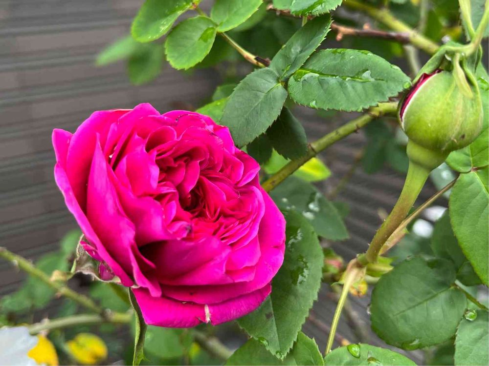 古めのイングリッシュローズのソフィーズローズが5番めの開花です🌹下の方にも2輪咲いてます♪今日も小雨ですがお天気回復するとどんどん咲きそうですね✨