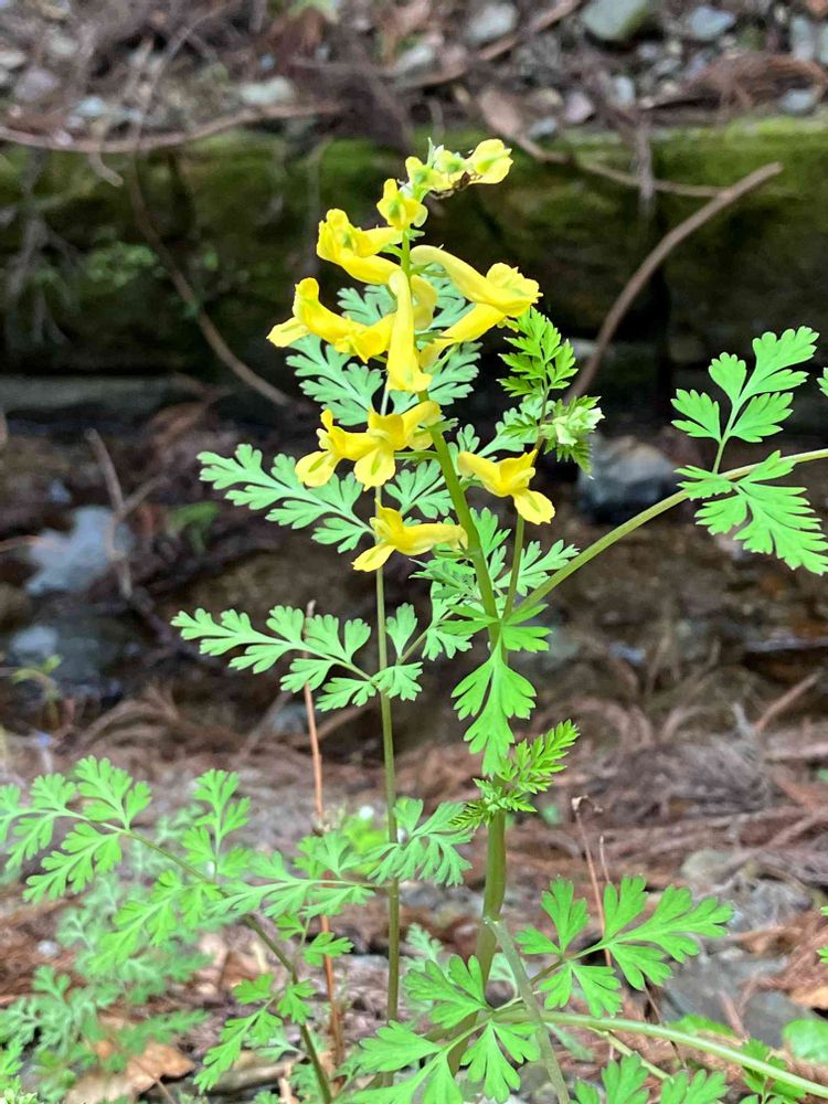 この類の黄色のは全部キケマンだと思ってましたが、これはミヤマキケマンという別の花でした。ミヤマといっても低山等で咲くそうで、キケマンより繊細な雰囲気です。キケマンは茎が太く、茎色が褐色でガッチリした雰囲気です。またキケマンの花の先端には褐色の斑紋があり目立ちます。両者共に有毒です😨