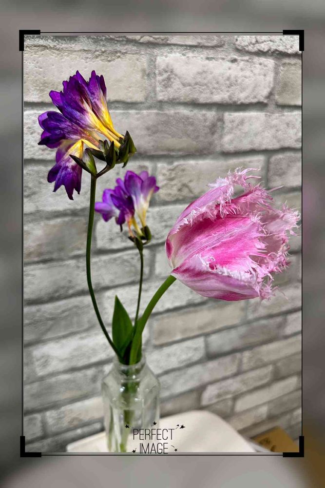 今日のお花はフリンジ咲きチューリップとフリージアです