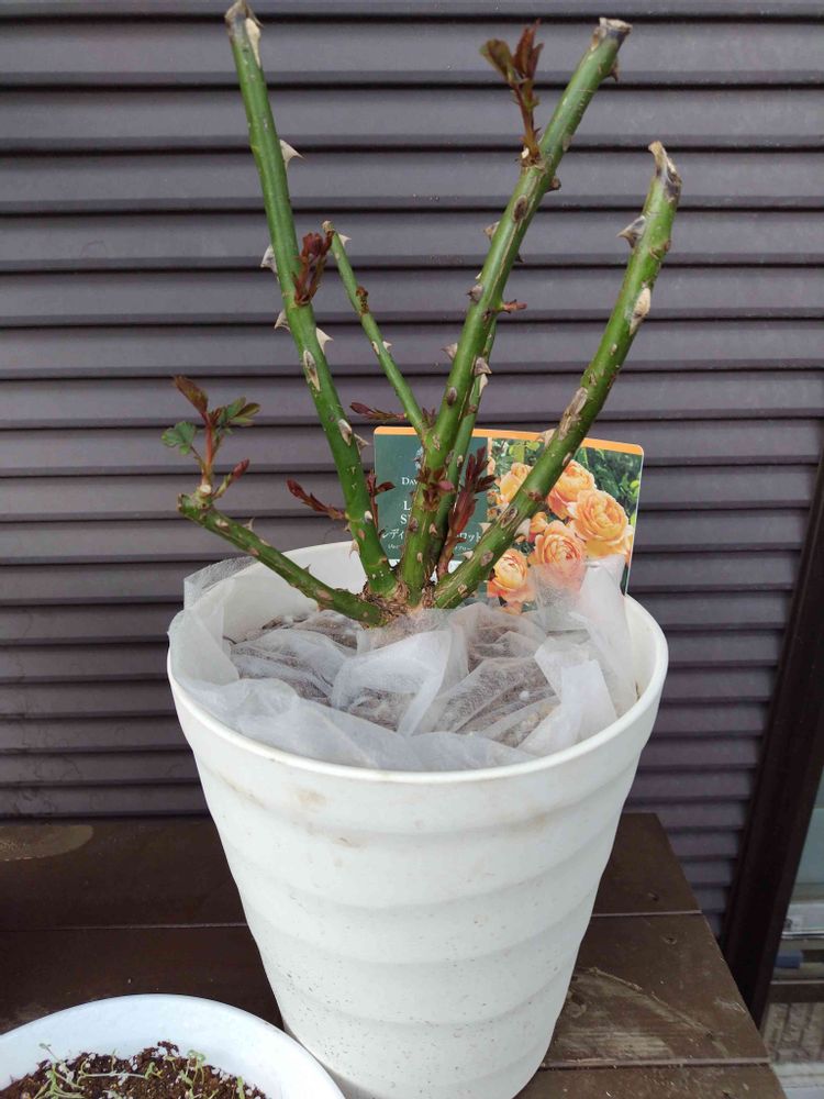 始めてのイングリッシュローズ。芽が出てこなくて心配してましたが、ここ数日で出てきました。