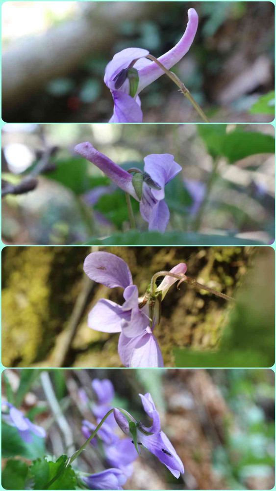 ナガハシスミレ(長嘴菫)別名テングスミレ(天狗菫)と、タチツボスミレ(立坪菫)。上から①②③④、どこで線を引きますか⁉️。