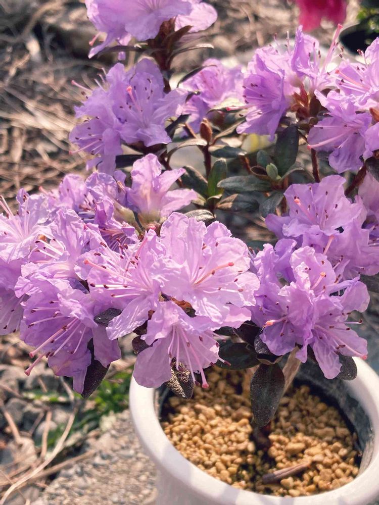 近くの直売所のお花コーナーでミニシャクナゲ ラマポー、一目惚れ😍で連れ帰りました。