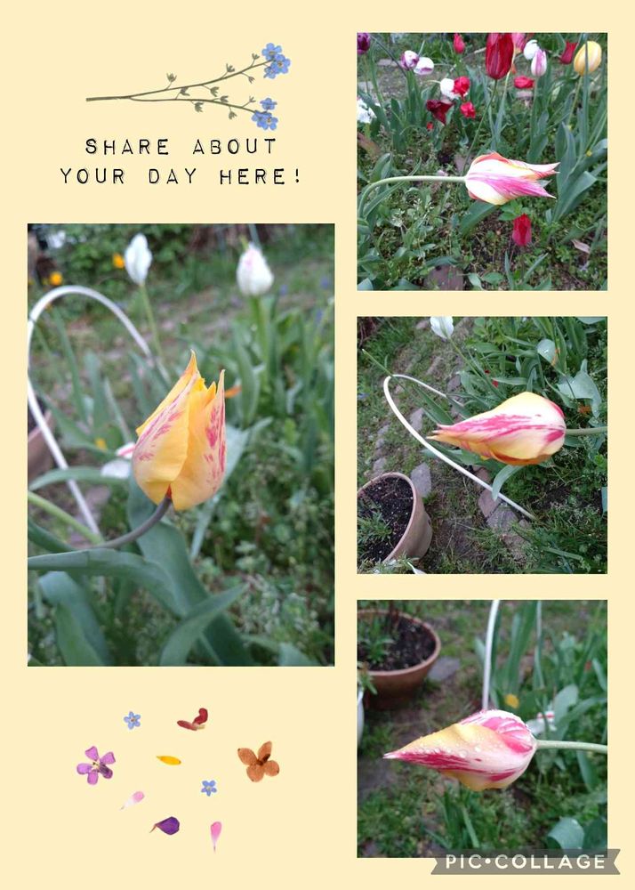チューリップ🌷さん、お花が大きく、茎が長い子は、起き上がるのが大変ですよね😣
