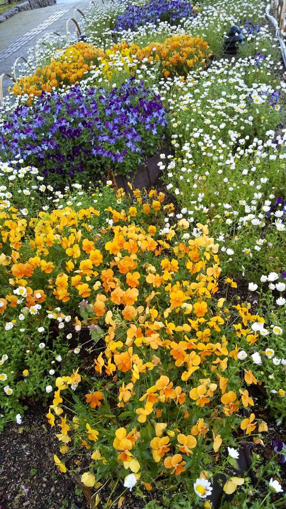 昨日の職場の花壇に咲いてるビオラとノースポールです!