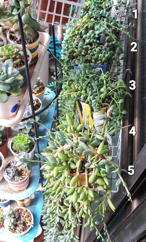 投稿pic.は、ベランダの掃き出し窓の網戸の真ん中の横バーに、ダイソーの、キッチンなどで使う、グリッド引っ掛けカゴに鉢を入れて引っ掛けてます😄その為、網戸は網無しにしてます👌台風でも震度7地震にも最強❗️🎶ツルの長いネックレスには、移動も自分も楽と思います🎶🔔奥行きのある軒下なので、年中定位置、夏場はAm10.時くらいまで、冬場は正午くらいまで陽が当たるのもgoo~と思ってます😃