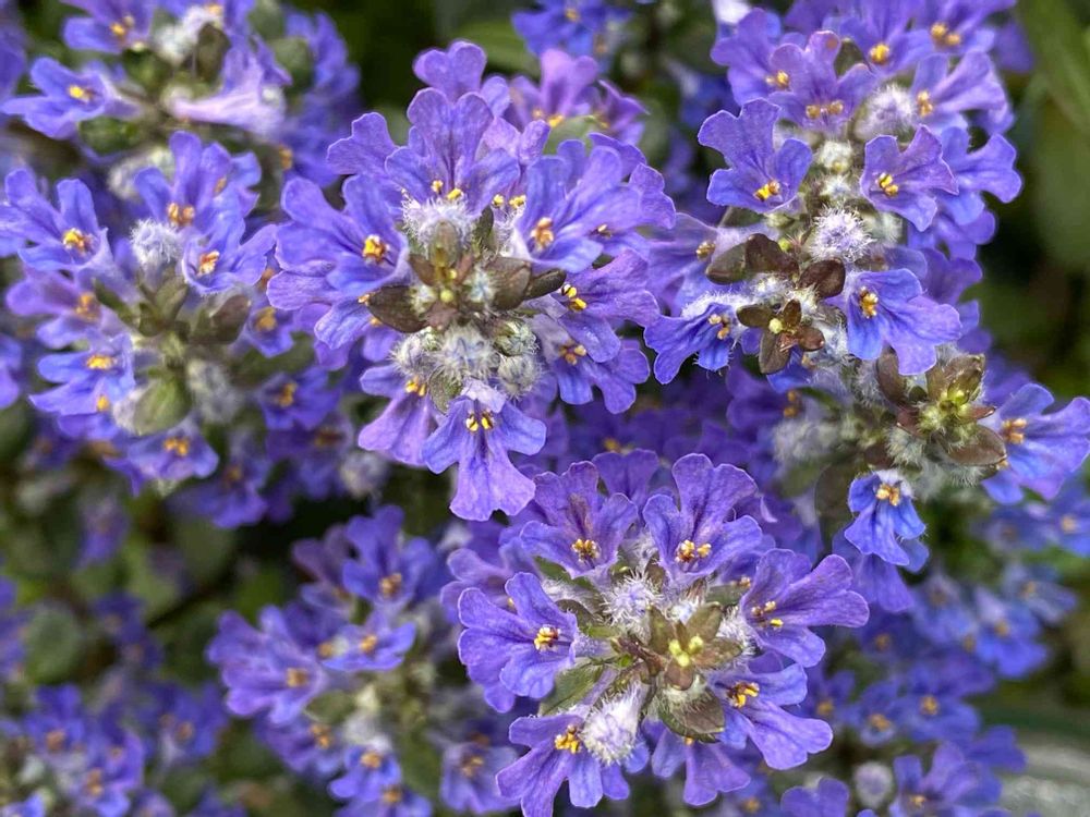 あのね、去年は、日陰で、弱々しい茎でした。ことしは、アジュガらしい色に育っています。