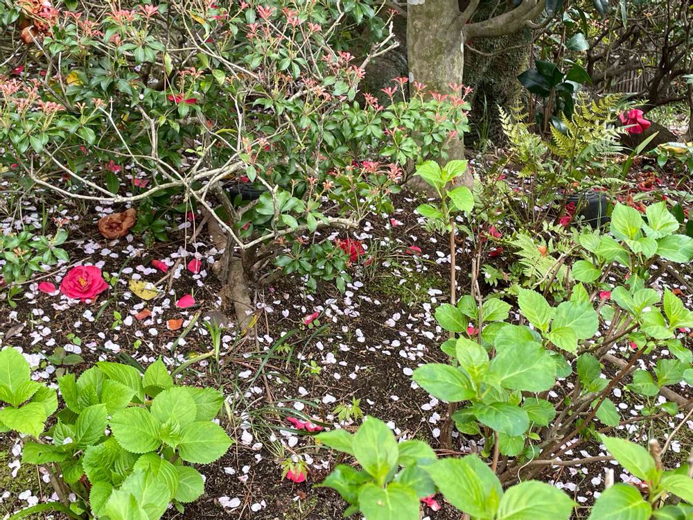 桜の花びらに椿なんとなく美しい風情を感じました。